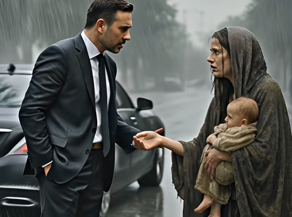 Он спешил в аэропорт на свой очередной рейс, когда по пути заметил женщину под дождём с маленьким ребёнком. На мгновение он пытался не отвлекаться и продолжить путь к аэропорту, но укол совести заставил его остановиться, выйти из машины и подойти к женщине.