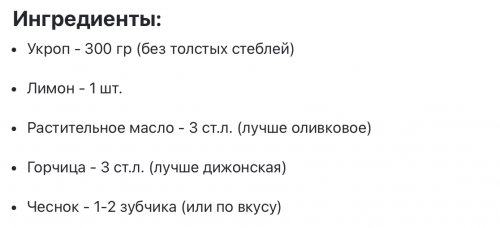 Лимонный сок: Выдавите сок из половины лимона и добавьте его в укроп.