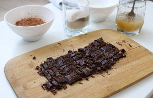 Я предпочитаю готовиться заранее, взвешивая все компоненты: какао, крахмал, сахар, молоко и сливки. Шоколадный брусок нарезаю на небольшие кусочки еще до начала приготовления.