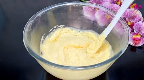 Затем введите в смесь муку и разрыхлитель, чтобы получилось густое тесто.