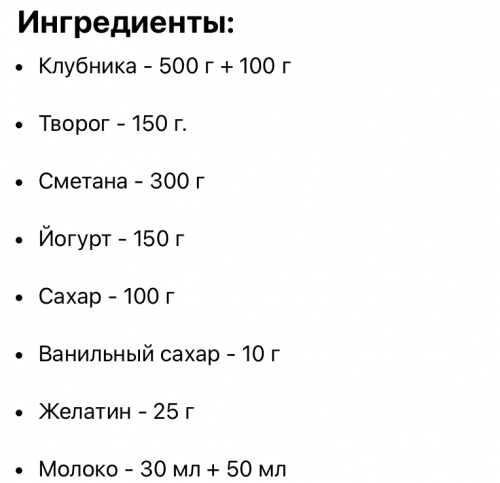 Для начала возьмите 600 г клубники. Из этого количества 500 г нарежьте кубиками для начинки, а оставшиеся 100 г оставьте целыми для украшения торта.