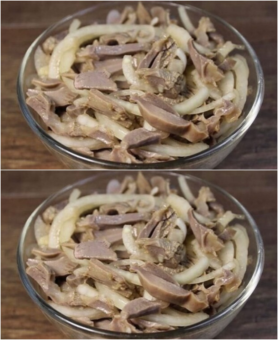 Затем заливаем желудки растительным маслом, добавляем измельченный в прессе чеснок, вливаем немного уксуса, подсаливаем.