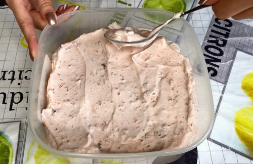 Перелейте массу в контейнер, разровняйте и отправьте в морозильник на 5-6 часов.