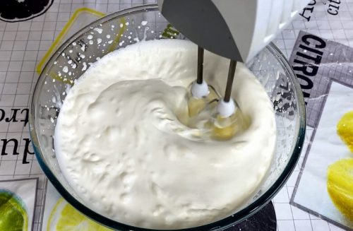 Доведите сливки до состояния мягких пиков. Они должны легко смешиваться с другими компонентами и не стекать с венчиков миксера.