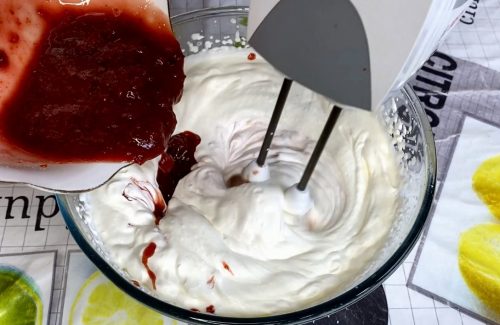 Достаточно короткого времени, чтобы сливки хорошо смешались с вареньем. Попробовав эту смесь, вы убедитесь в ее превосходстве: вишнево-сливочный крем получается невероятно вкусным.