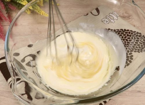 В миску вбиваю яйцо, добавляю три столовые ложки сахара, немного ванильного сахара и щепотку соли. Затем вливаю растительное масло и кефир. Всё тщательно перемешиваю венчиком. Важно, чтобы кефир был комнатной температуры.