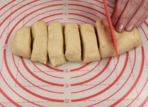 Каждую часть формирую в колбаску и нарезаю на восемь примерно равных по размеру кусочков. Можно взвесить каждый на кухонных весах для точности.
