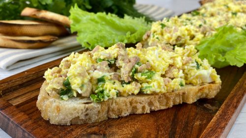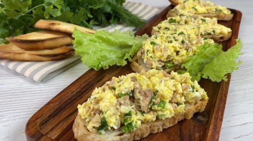 Сегодня я хочу поделиться с вами рецептом восхитительной намазки для бутербродов. Её можно назвать салатом или закуской — ведь в прошлом в СССР существовал похожий салат, который также подавался в разных вариациях: в тарталетках, в лаваше или просто на хлебе.