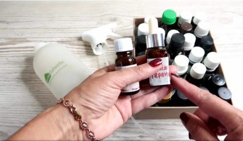 Нужно взять немного воды, около 200 миллилитров, влить примерно 7-8 капель ментолового масла и масла с ароматом герани. Получившееся средство следует перелить в флакон с распылителем и долить еще пол литра воды. Хорошо встряхнуть флакон.