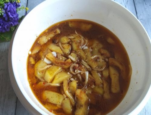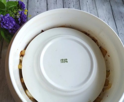 Покрываем тарелкой, устанавливаем нагрузку около 4-5 кг и отправляем в холодильник на маринование на ночь.