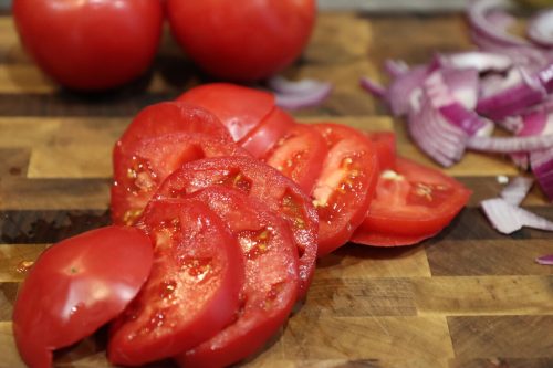 Самое сложное в приготовлении этой закуски — дождаться, когда всё промаринуется. Нельзя точно сказать, что вкуснее: сами помидоры, маринованный лук или маринад, которого получается достаточно много.