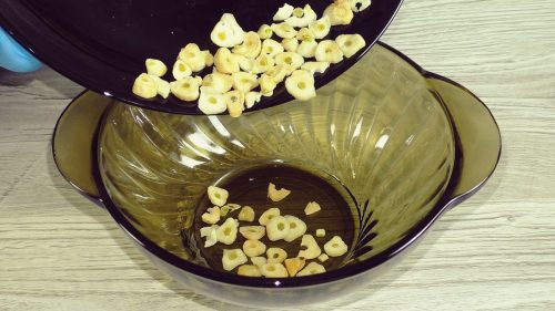 Отправляем нарезанный чеснок в микроволновку на минуту, затем перемешиваем и ставим еще на минуту. Повторяем, пока чеснок не подсохнет. У меня при мощности 800 Вт уходит около двух минут, но сразу на две минуты не включайте, лучше делайте это по 30 секунд четыре раза.
