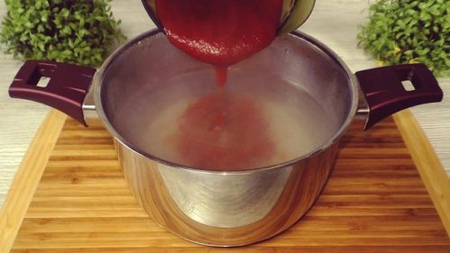 После закипания добавляю кетчуп и уксус, кипячу смесь одну-две минуты.