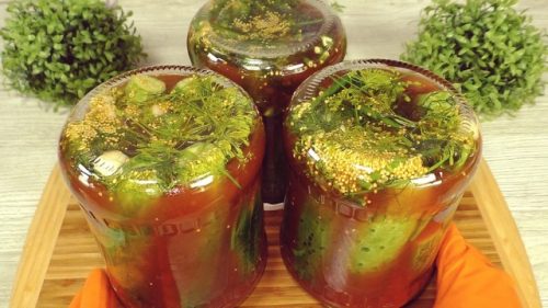 Также добавляю несколько долек чеснока и немного горчичных зерен.