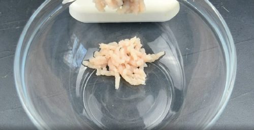 Перекрутите хлеб через мясорубку, предварительно отжав его.