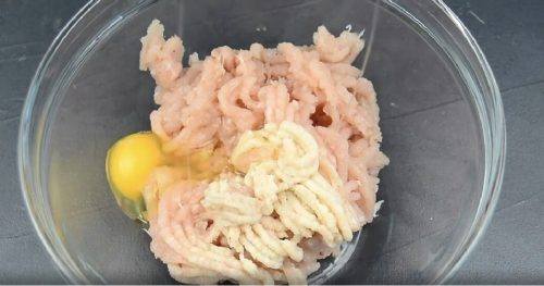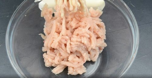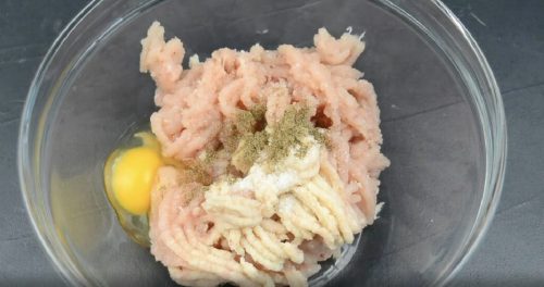 Тщательно перемешайте ингредиенты, слегка отбив фарш.