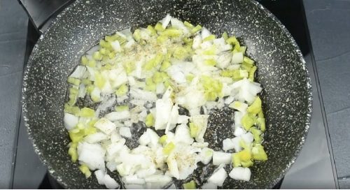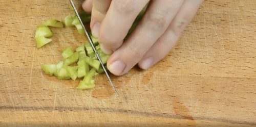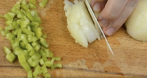 Мелко нарежьте сладкий перец и зелень для соуса.