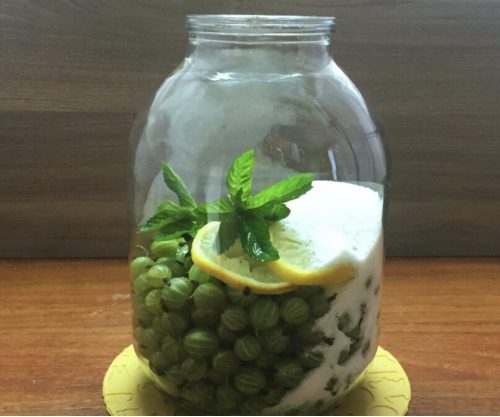 На 3-литровую банку потребуется 250 граммов сахара. Количество сахара можно регулировать в зависимости от сладости крыжовника, но не стоит брать слишком мало, иначе компот получится пресным.