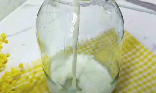 Сначала молоко наливают в чистую банку.