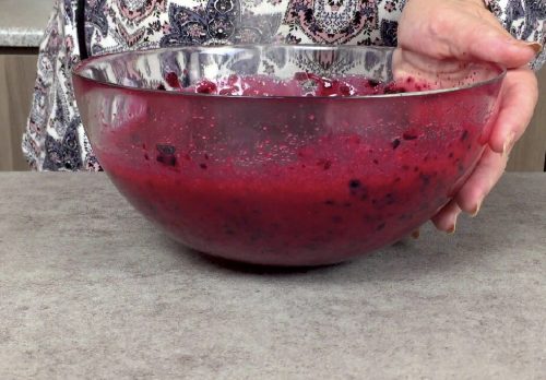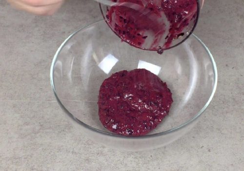 Оставшиеся ягоды по частям измельчаю в блендере до состояния однородного пюре, которое затем перекладываю в чистую миску.