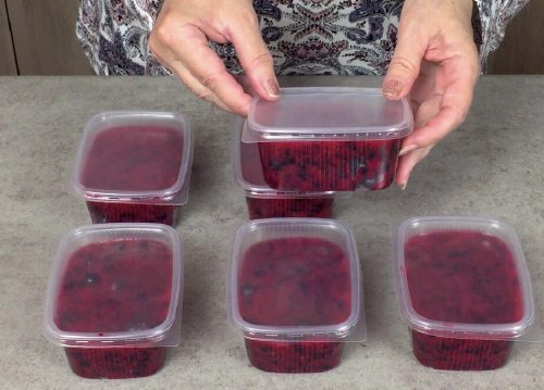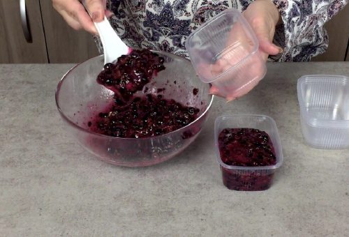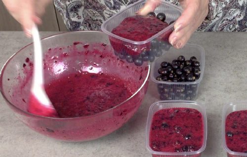 Получившуюся смородину расфасовываю по контейнерам и отправляю на хранение в морозильник. Такая заготовка идеально подойдет для блинчиков, оладий, творога или мороженого.