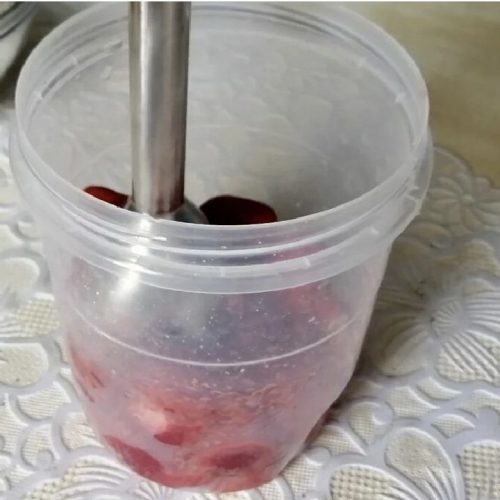 Свежую клубнику очищаем и измельчаем блендером погружным до массы однородной.