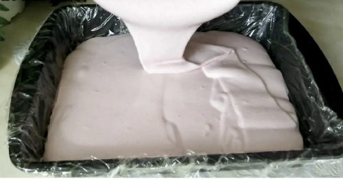 Переливаем массу пышную в форму подготовленную заранее и для застывания в холодильник отправляем минимум на 2-3 часа.