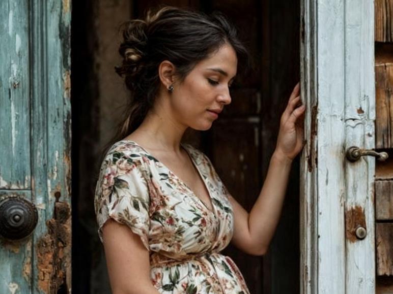 Еле пробравшись к калитке, намело то прилично, она открыла дверь, и обмерла, не веря своим глазам. На лютом морозе, еле держась на ногах, привалившись к забору стояла молодая девушка. Она была в одной ночнушке, босиком, а сверху накинута вязаная шаль. Видно, что она ещё и беременна, живот виднелся довольно большой…