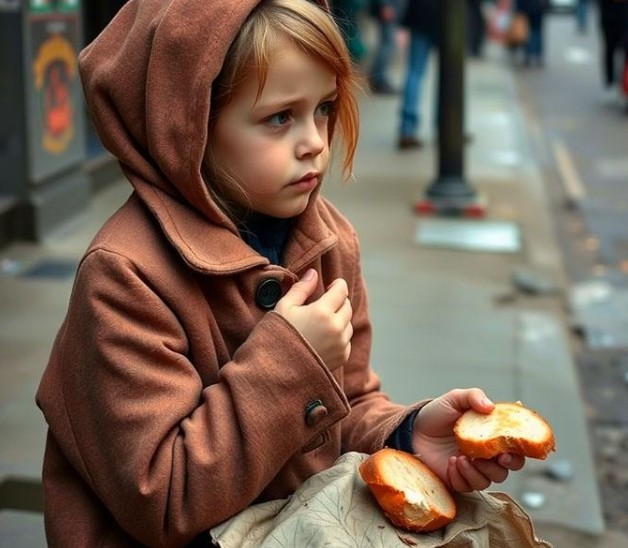 Но вдруг за подол её платья потянула маленькая девочка — лет пяти-шести, в потёртом платьице, с грязными щёчками и огромными глазами.
