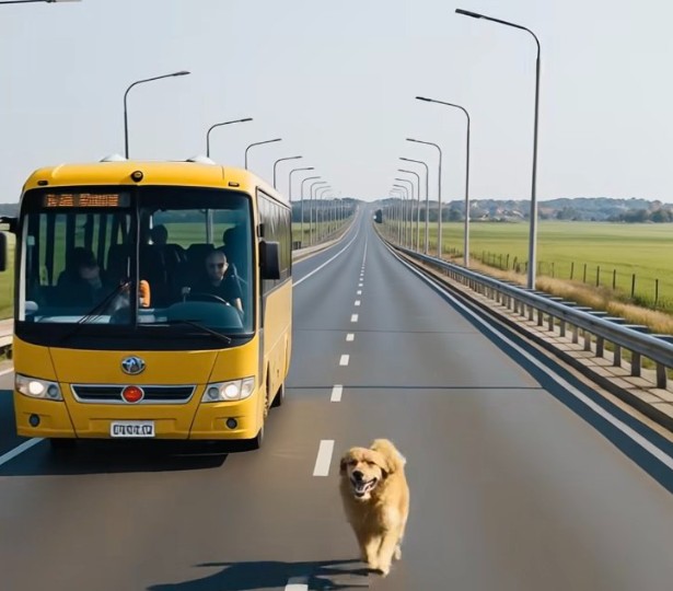 Автобус ехал по своей обычной дороге, когда из неоткуда выскочила собака и начала бежать возле автобуса: все были в шоке, узнав причину