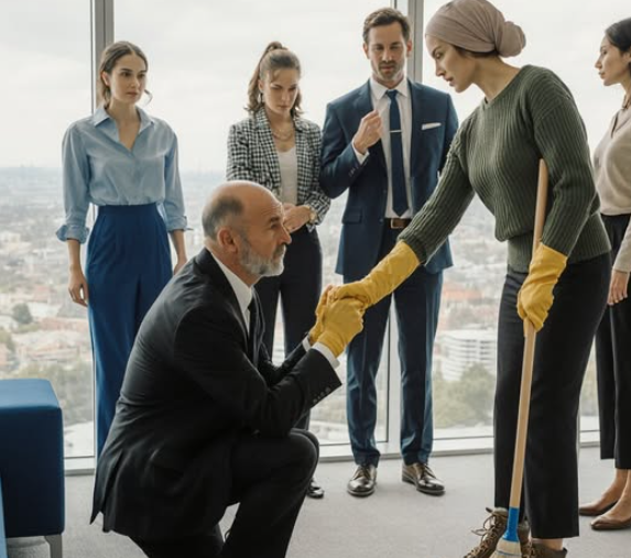 ГЕНЕРАЛЬНЫЙ ДИРЕКТОР УПАЛ НА КОЛЕНИ ПЕРЕД МОЛЧАЛИВОЙ УБОРЩИЦЕЙ — ЕЁ СЛОВА РАСКРЫЛИ УЖАСНУЮ ТАЙНУ