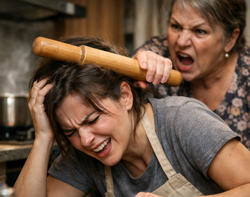 Когда я готовила ужин, свекровь оттолкнула меня скалкой по голове рявкнув: — Кто так режет, криворукая!