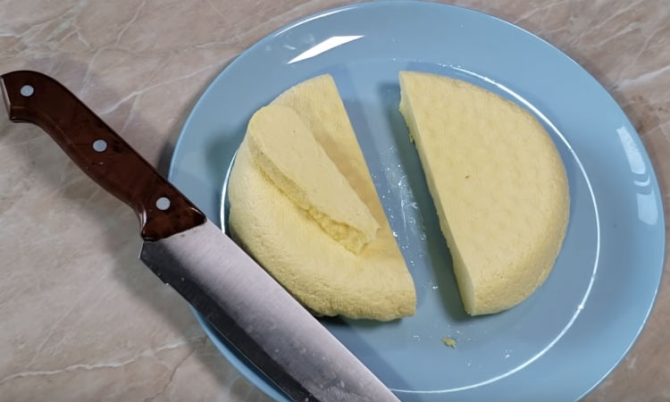 Теперь осталось поставить сыр под груз, так он будет более плотным и удобным для резки.
