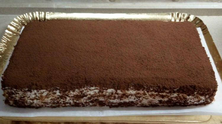 С помощью небольшого ситечка посыпьте поверхность торта какао-порошком, отправьте торт в холодильник не меньше чем на 2 часа, чтобы хорошо пропитался. Готовый торт можно подавать на стол, приятного вам аппетита!