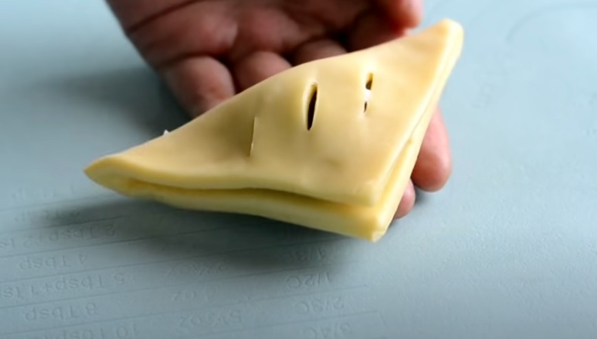 Раскатываем пласт толщиной около 5 мм, разрезаем на порционные кусочки и оставляем на 10 минут.